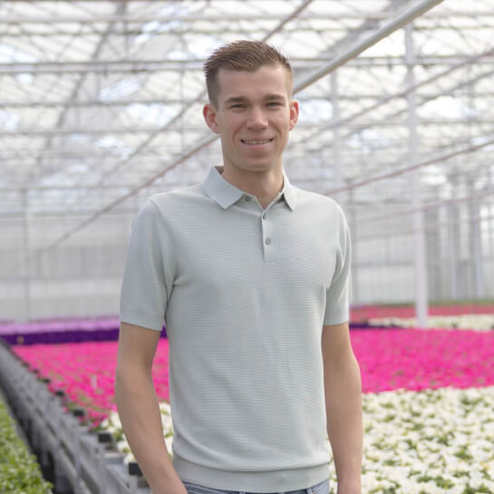 Binnen ons bedrijf ben ik verantwoordelijk voor de teelt. Daar ligt mijn kennis én passie. Ik kijk naar het product en zie meteen wat het nodig heeft. Mijn doel is dat alles er strak en verzorgd bij staat, zodat wij samen met ons team iedere dag de beste kwaliteit planten op onze kwekerij kunnen leveren.